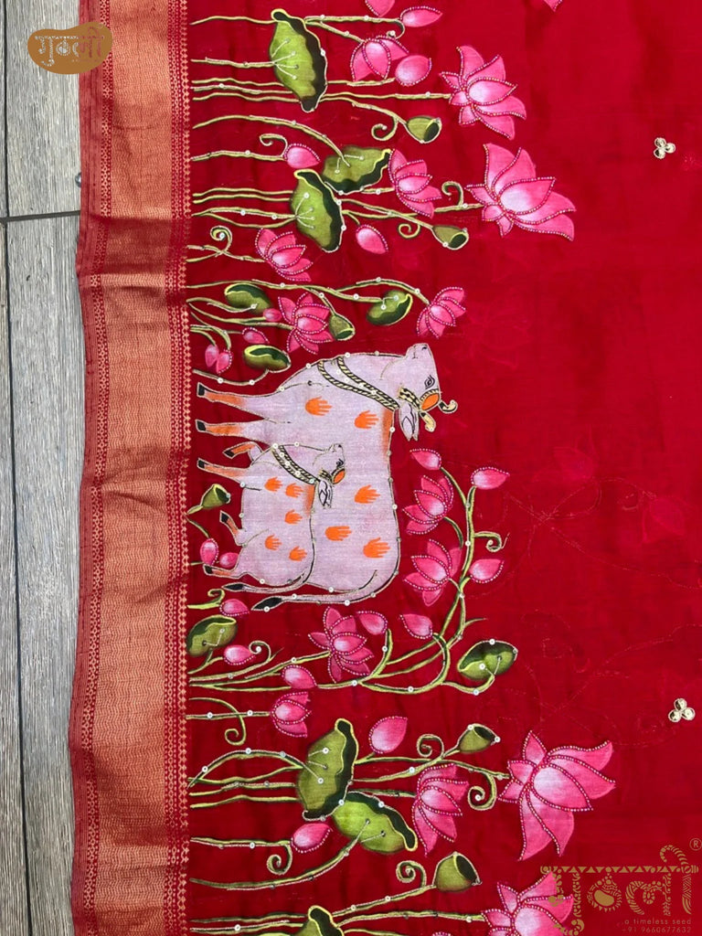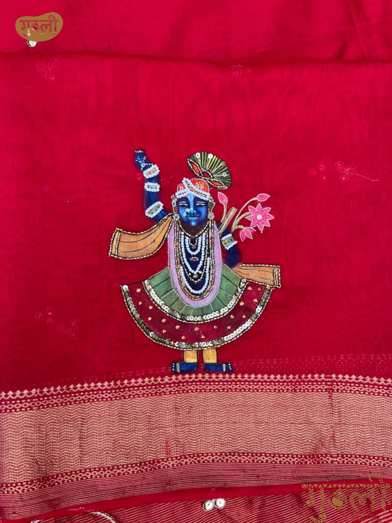 Nathdwara Handpainted Laal Pichwai Saree